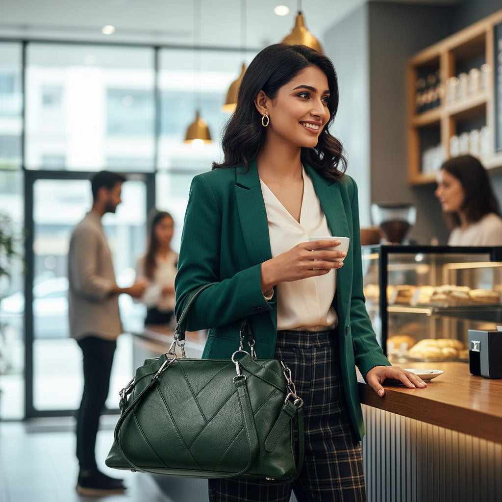 Its clever proportions — 22 cm (8.6 in) high, 37 cm (14.5 in) long, and 10 cm (3.9 in) wide — give you ample space for your daily essentials without adding unnecessary weight. At just 0.85 kg, it sits comfortably whether worn crossbody or carried in hand, with a silhouette that complements both structured office looks and relaxed weekend outfits.